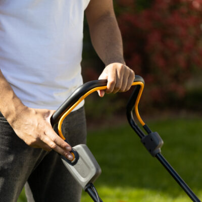 Το Collector 140e Kit είναι ένα ελαφρύ χλοοκοπτικό που λειτουργεί με μπαταρία, είναι εύκολο στον χειρισμό και αρκετά ανθεκτικό. Με μία μόνο φόρτιση, μπορεί να καλύψει έως και 350 τ.μ. Επειδή είναι ένα χλοοκοπτικό χωρίς καλώδιο, μπορείτε να εργαστείτε ξέγνοιαστα. Η υπερθέρμανση δεν αποτελεί πρόβλημα, χάρη στη βελτιστοποιημένη κυκλοφορία του αέρα. Και επειδή λειτουργεί με μπαταρία, είναι πολύ πιο αθόρυβο από ένα τυπικό χλοοκοπτικό βενζίνης. Είναι επίσης άνετο, με τιμόνι μαλακής λαβής ρυθμιζόμενο σε δύο θέσεις και λαβή που ανυψώνεται εύκολα. Υπάρχει επιλογή από έξι ύψη κοπής, τα οποία μπορείτε να ρυθμίσετε εύκολα, χρησιμοποιώντας ένα μοχλό. Διαθέτει κάδο συλλογής χλόης 40 λίτρων. Το επάνω μέρος του είναι πλαστικό και το κάτω υφασμάτινο. Σημαντικό επίσης είναι, ότι μετά την ολοκλήρωση της εργασίας σας, το τιμόνι διπλώνει πλήρως, εξοικονομώντας χώρο αποθήκευσης.